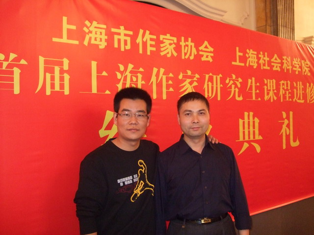 在上海首届作家研究生班结业典礼上,和温亚军
